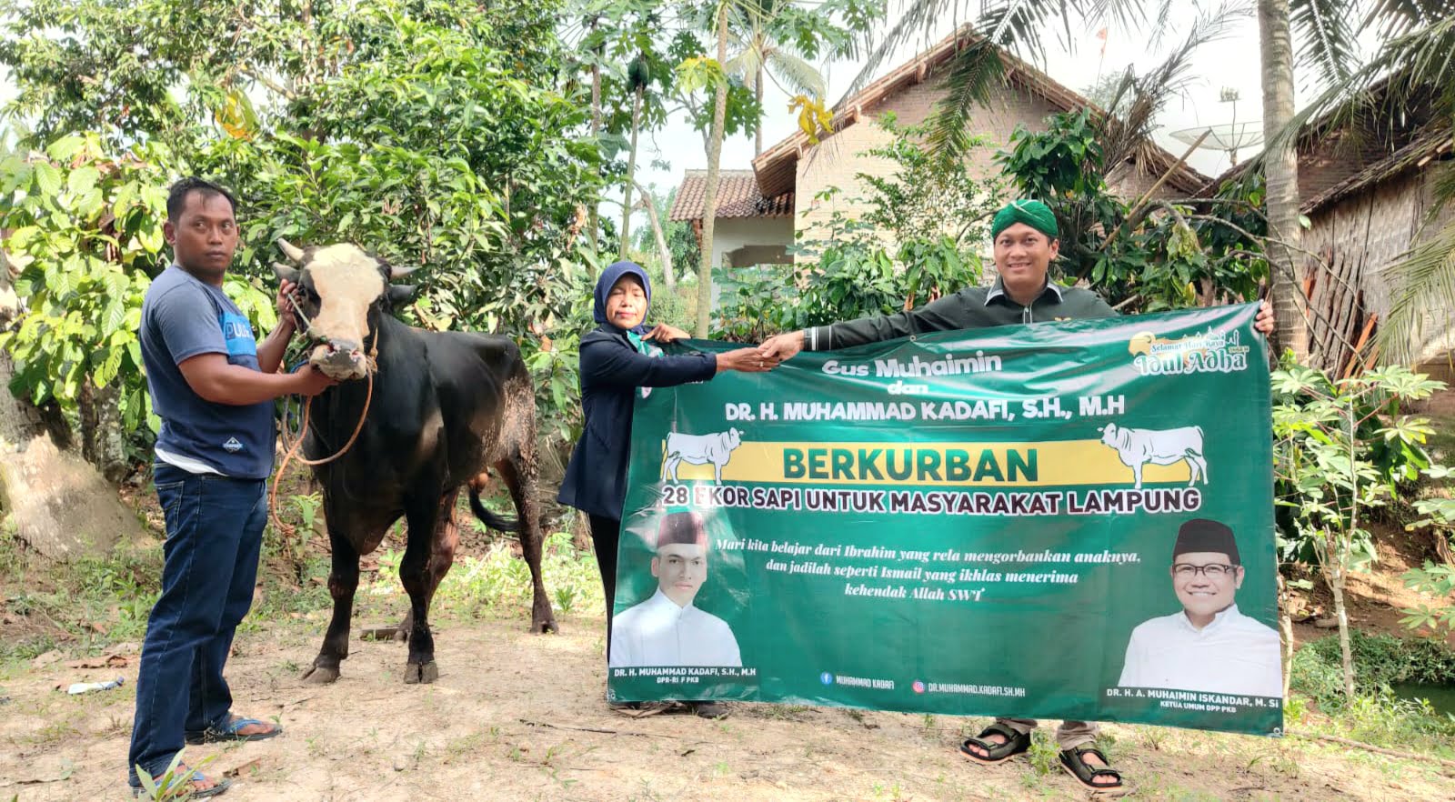Tidak terkecualiĀ pada hari raya Idhul Adha tahun ini Ketua Umum Partai Kebangkitan Bangsa Dr. (HC), H. A. Muhaimin Iskandar, M. Si., atau yang lebih akrab dipanggil Gus Muhaimin dan Anggota DPR RI F-PKB dapil Lampung 1, Dr. H. Muhammad Kadafi, SH , MH., membagikan 28 ekor sapi qurban untuk masyarakat Lampung.