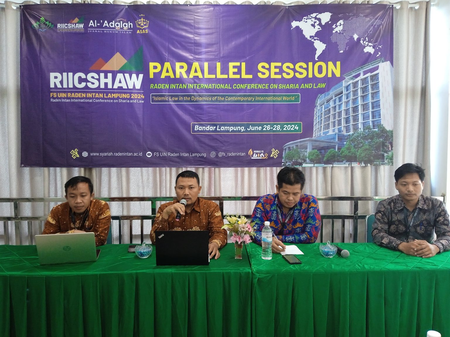 JARRAKPOSLAMPUNG – Sebanyak 100 akademisi dan praktisi dari berbagai perguruan tinggi dalam dan luar negeri berkumpul di Fakultas Syariah Universitas Islam Negeri (UIN) Raden Intan Lampung untuk mempresentasikan artikel mengenai dinamika hukum kontemporer. Acara bertajuk “The Second Raden Intan International Conference on Sharia and Law (RIICSHAW) 2024” ini berlangsung selama tiga hari di Gedung Puslat Pascasarjana UIN Raden Intan Lampung. Naskah yang dipresentasikan akan diterbitkan dalam jurnal Scopus, jurnal Sinta, dan prosiding internasional.