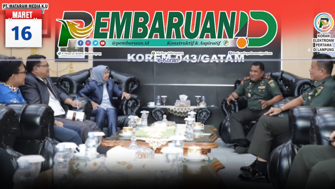 PEMBARUAN.ID -Rektor Universitas Lampung Prof. Dr. Ir. Lusmeilia Afriani, DEA. IPM beserta para wakil rektor, Dekan FISIP dan Ketua LPPM melaksanakan audiensi ke Markas Korem 043 Garuda Hitam, Kamis (16/3/2023).