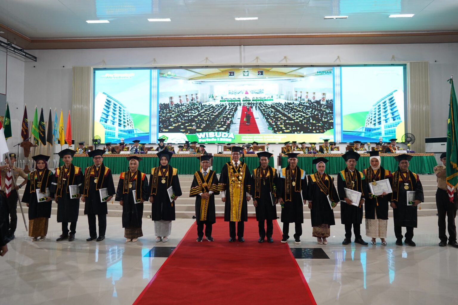 JARRAKPOSLAMPUNG – Universitas Islam Negeri (UIN) Raden Intan Lampung (RIL) resmi mewisuda 838 lulusan pada Sidang Senat Terbuka Wisuda Periode I Tahun 2025 yang digelar pada Rabu (26/2/2025). Prosesi wisuda berlangsung di Gedung Serbaguna (GSG) KH Ahmad Hanafiah dengan dihadiri para wisudawan beserta keluarga mereka yang penuh suka cita menyaksikan momen bersejarah tersebut.