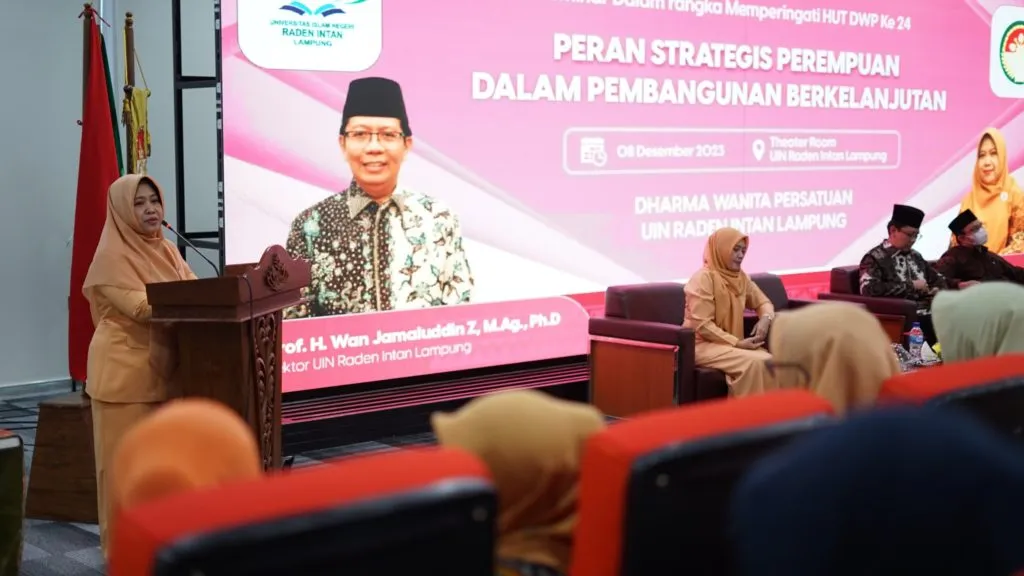 JARRAKPOSLAMPUNG – Universitas Islam Negeri (UIN) Raden Intan Lampung merayakan ulang tahun yang ke-24 dari Dharma Wanita Persatuan (DWP) dengan sebuah seminar yang mengangkat isu penting mengenai peran strategis perempuan dalam pembangunan berkelanjutan. Acara yang diselenggarakan pada Jumat, 8 Desember 2023, menarik partisipasi lebih dari 60 anggota dan pengurus DWP dari berbagai institusi.