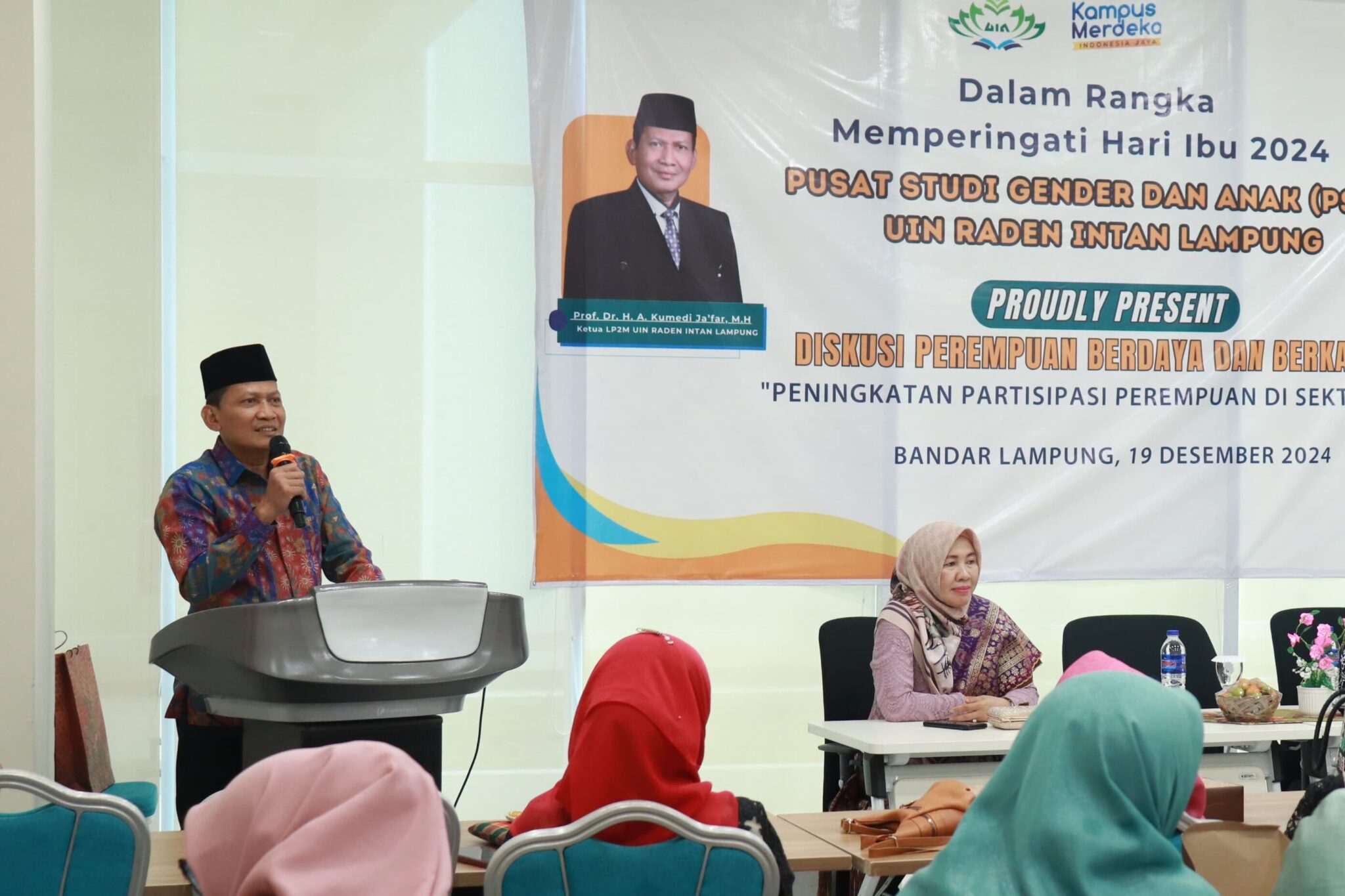 JARRAKPOSLAMPUNG – Dalam rangka memperingati Hari Ibu 2024, Pusat Studi Gender dan Anak (PSGA) Universitas Islam Negeri (UIN) Raden Intan Lampung (RIL) menggelar diskusi bertema “Peningkatan Partisipasi Perempuan di Sektor Publik”. Acara ini diselenggarakan di Ruang Meeting 9, Gedung Academic & Research Center, dan dihadiri oleh dosen serta penggiat isu gender dari berbagai kalangan.