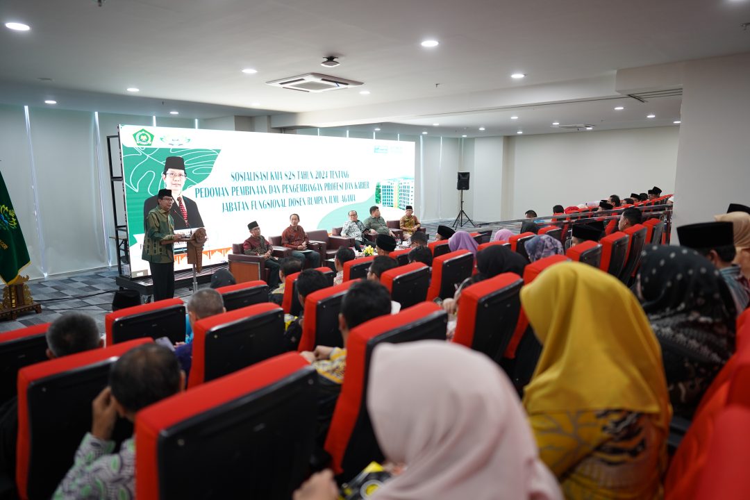 Prof. Dr. Abdul Mujib, MAg, MSi, Tim Ahli Diktis Pendis Kemenag RI, menjadi salah satu narasumber dalam sosialisasi ini. Dalam presentasinya, ia menjelaskan mekanisme pengembangan karier dosen, khususnya di rumpun ilmu agama. KMA 828 memberikan panduan lengkap mengenai kenaikan jabatan fungsional dosen, dari Asisten Ahli hingga Guru Besar, dengan penekanan pada uji kompetensi dan publikasi ilmiah di jurnal bereputasi internasional.
