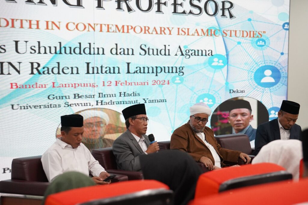 JARRAKPOSLAMPUNG – Universitas Islam Negeri (UIN) Raden Intan Lampung (RIL) menunjukkan komitmennya dalam mewujudkan internasionalisasi kampus dengan menghadirkan guru besar dari luar negeri. Fakultas Syariah (FS) bersama Fakultas Ushuluddin dan Studi Agama (FUSA) UIN RIL menggelar kegiatan berupa visiting lecture yang menghadirkan seorang Guru Besar Ilmu Hadis dari Universitas Sewun Hadromaut Yaman, Prof Dr. Habib Alwi bin Hamid bin Syihab.