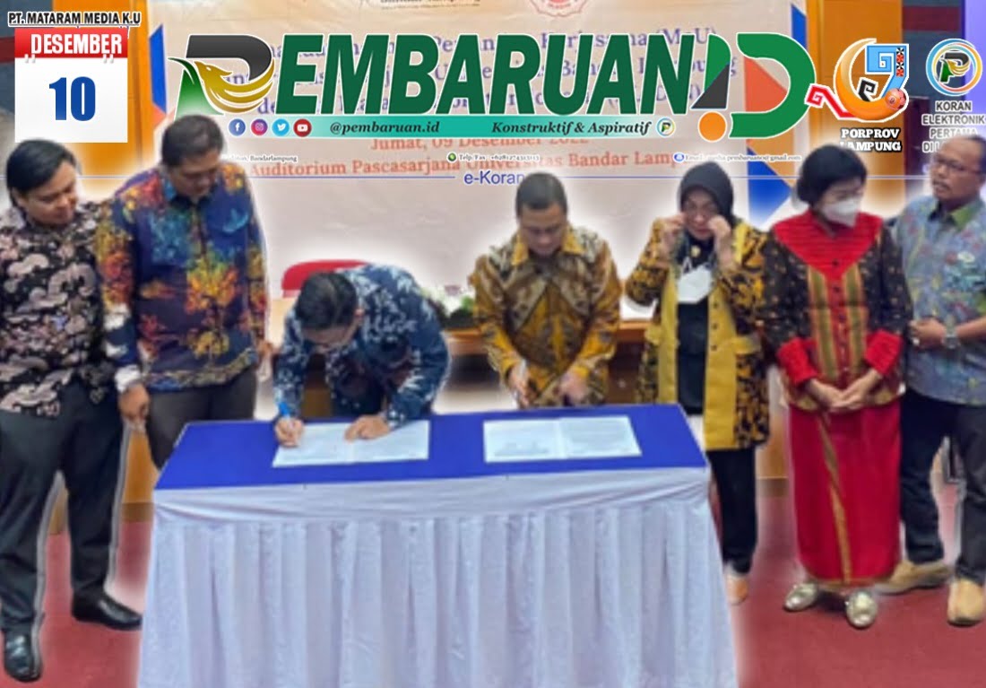 PEMBARUAN.ID – Dewan Pimpinan Daerah (DPD) Ikatan Advokat Indonesia (IKADIN) Provinsi Lampung, menandatangani perjanjian kerjasama dengan Pascasarjana Universitas Bandar Lampung (UBL), di Auditorium Pascasarjana UBL, Jumat (09/12/2022).