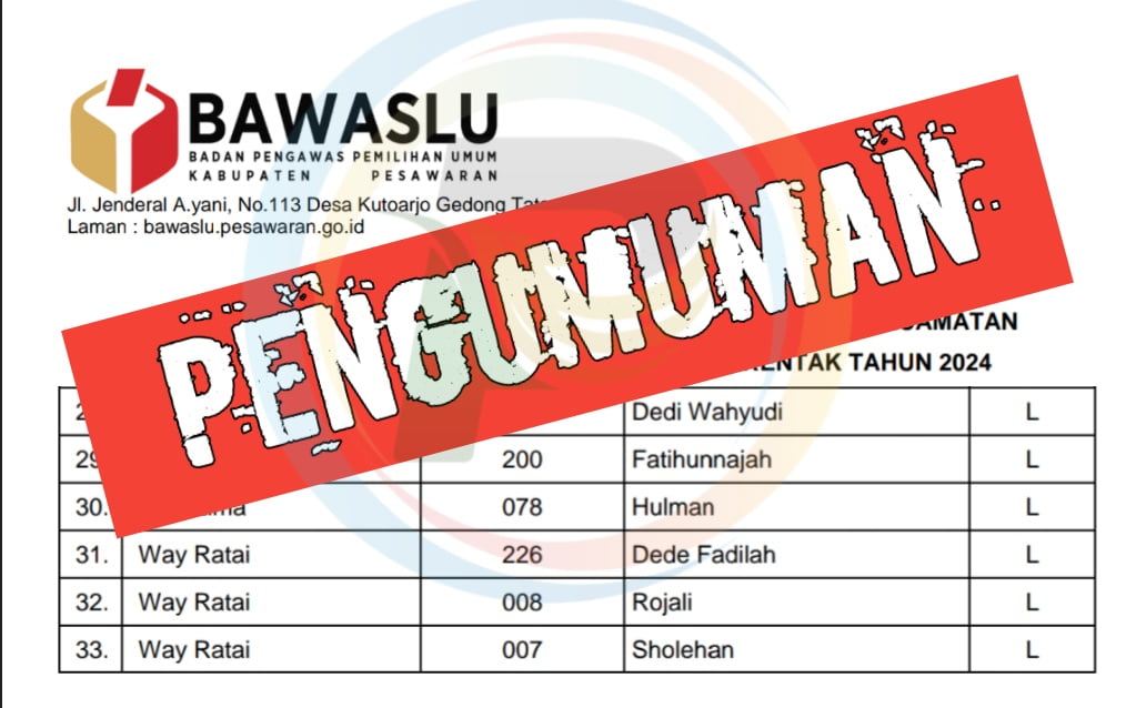 Berikut adalah 33 nama Panwascam se-Kabupaten Pesawaran.