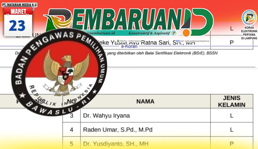 PEMBARUAN.IDĀ – Bawaslu RI akhirnya mengumumkan nama -nama anggota tim seleksi Bawaslu Provinsi se-Indonesia, Jumat (24/03/2023).