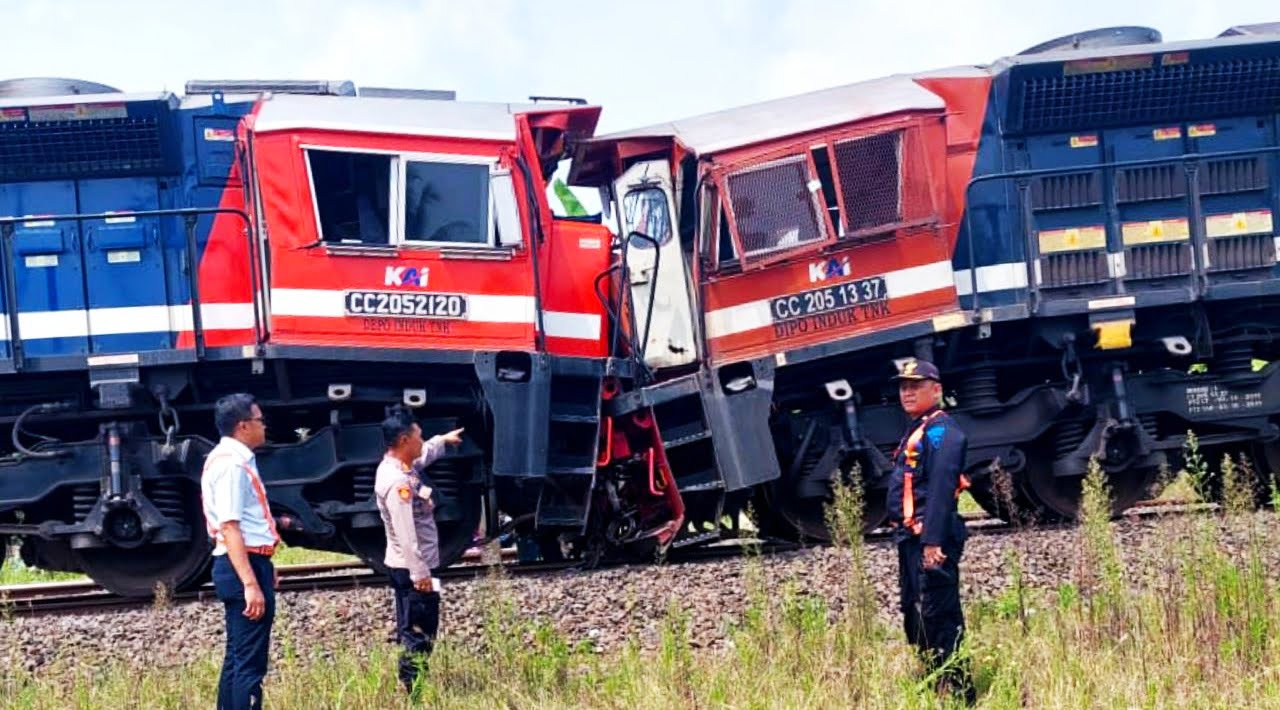 “Terjadilah tabrakan antara kedua lokomotif tersebut yang mengakibatkan dua gerbong bermuatan batu bara anjlok dan terguling, kemudian beberapa gerbong kosong anjlok dan keluar perlintasan rel serta menghantam peron stasiun,” kata dia.
