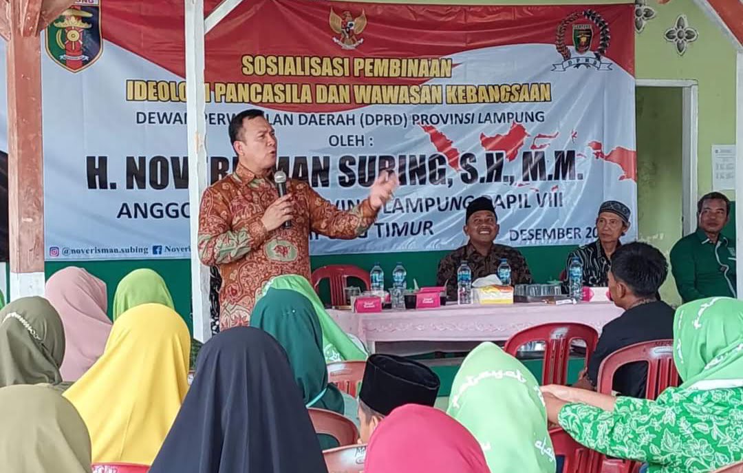 PEMBARUAN.ID – Legislator Partai Kebangkitan Bangsa (PKB), yang juga Wakil Ketua Komisi III DPRD Provinsi Lampung H Noverisman Subing, kembali menggelar sosialisasi Ideologi Pancasila dan Wawasan Kebangsaan (IPWK) di Desa Kibang, Metro Kibang, Lampung Timur, Sabtu (03/12/2022).