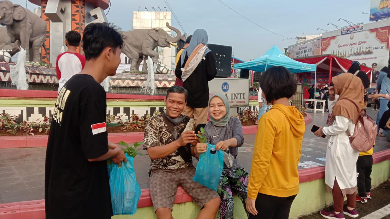 PEMBARUAN.ID – DPD Banteng Muda Indonesia Indonesia (BMI) Provinsi Lampung membagikan bibit pohon di Tugu Adipura Provinsi Lampung, Minggu (31/07/22).
