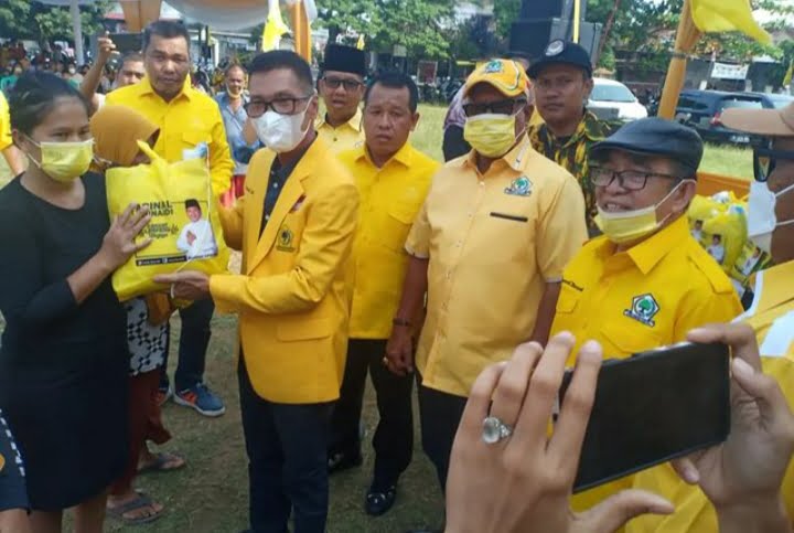 Pembagian paket sembako tersebut dalam rangkaian kegiatan sosialisasi dan bakti sosial yang digelar oleh DPD Partai Golkar Bandarlampung di Lapangan Sepakbola Sawah Brebes Tanjungkarang Timur.