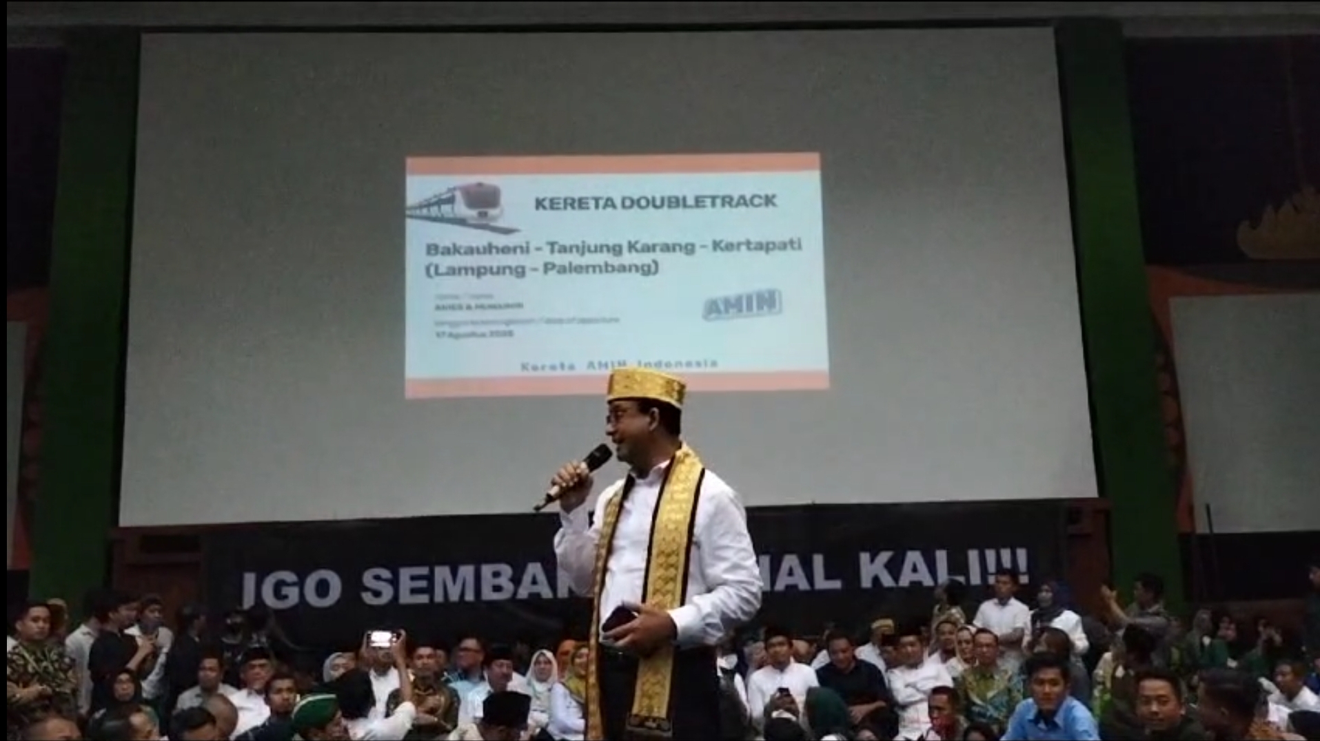 “Nih kita persiapkan kereta double track, Bakauheni Tanjungkarang, Kertapati, Lampung-Palembang,” kata Anies di hadapan mahasiswa/i Universitas Malahayati, Kota Bandarlampung.