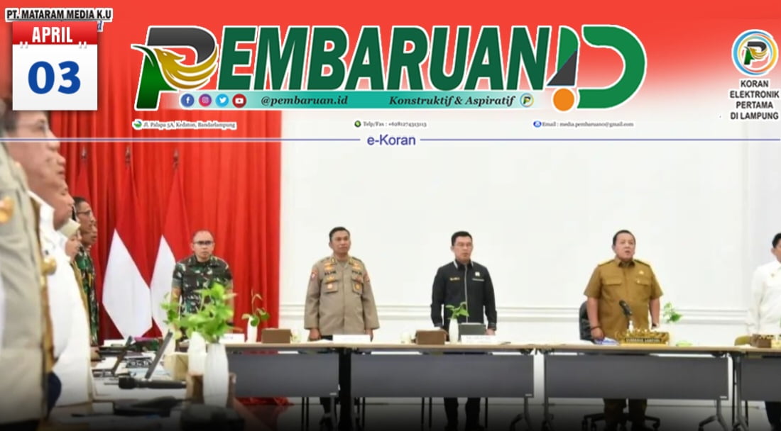 PEMBARUAN.ID – Untuk mewujudkan perayaan Idul Fitri 1444H yang tertib, aman dan nyaman bagi masyarakat, Gubernur Lampung Arinal Djunaidi menggelar Rapat Koordinasi Persiapan Menjelang Hari Raya Idul Fitri 1444H/2023. Rapat bersama seluruh Jajaran Forkopimda dan Pemerintah Kabupaten/Kota se-Provinsi Lampung di Mahan Agung, Rumah Dinas Gubernur Lampung, Senin (03/04/2023).