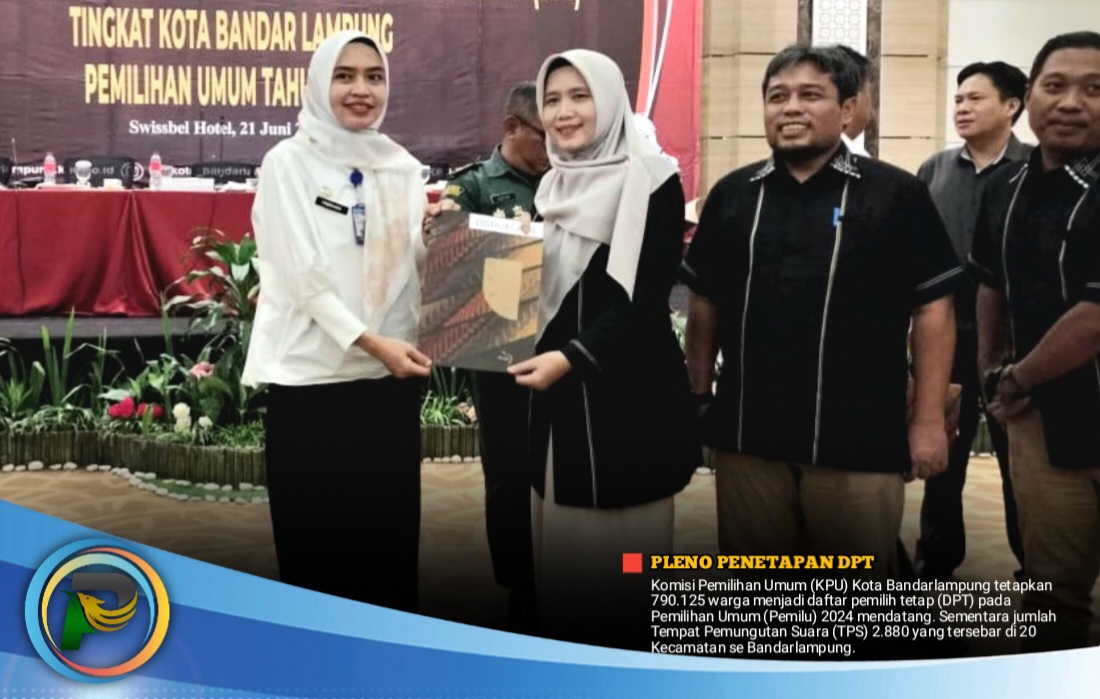 PEMBARUAN.ID – Komisi Pemilihan Umum (KPU) Kota Bandarlampung tetapkan 790.125 warga menjadi daftar pemilih tetap (DPT) pada Pemilihan Umum (Pemilu) 2024 mendatang.