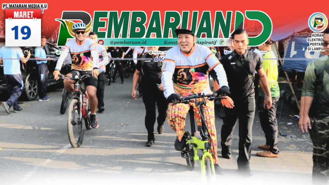 PEMBARUAN.ID – Puncak acara Hari Ulang Tahun (HUT) ke- 59 Provinsi Lampung meriah. Gubernur Lampung Arinal Djunaidi bersama Wakil Gubernur Lampung Chusnunia Chalim melepas ribuan peserta Sepeda Santai 17 K dan 4 K di Lapangan Korem 043 Gatam, Saburai Enggal, Bandarlampung, Minggu (19/03/2023).