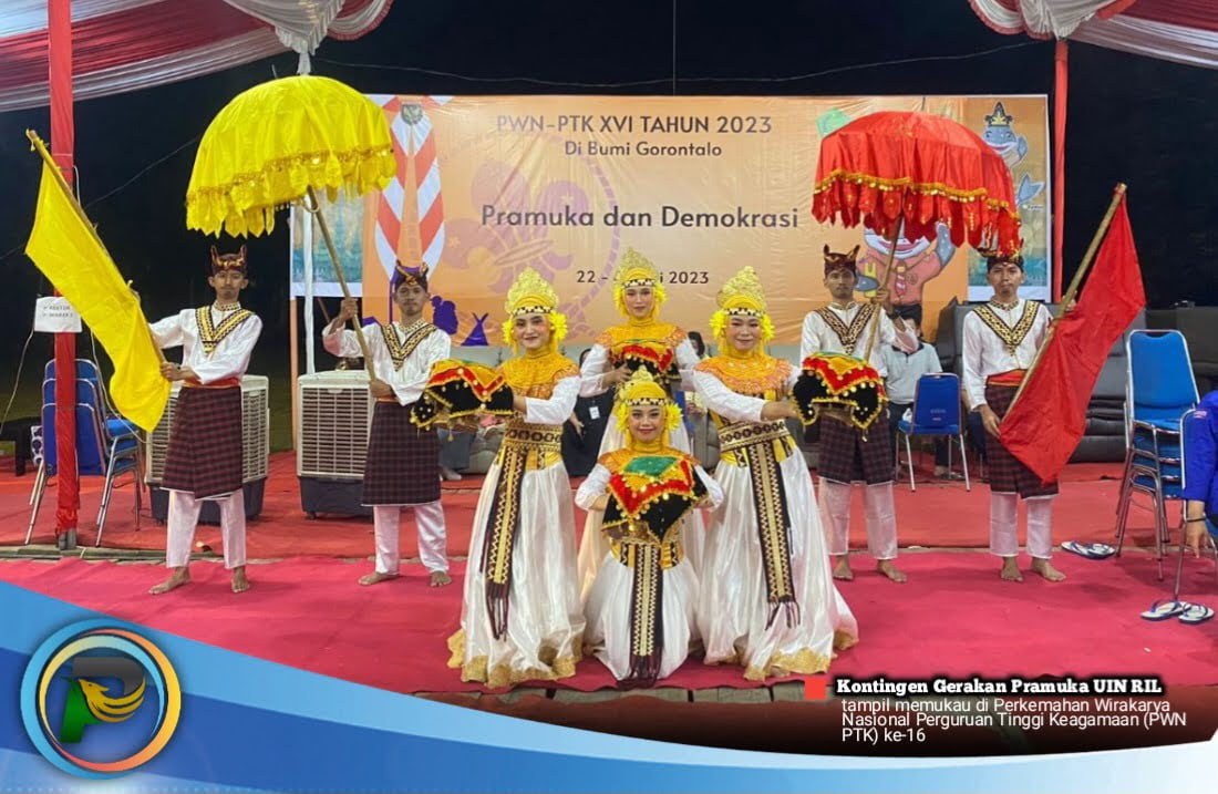PEMBARUAN.ID – Kontingen Gerakan Pramuka Universitas Islam Negeri (UIN) Raden Intan Lampung (RIL) tampil memukau di Perkemahan Wirakarya Nasional Perguruan Tinggi Keagamaan (PWN PTK) ke-16 dengan menampilkan Tari Cangget Bakha Pilangan, Rabu (24/05/2023) malam.
