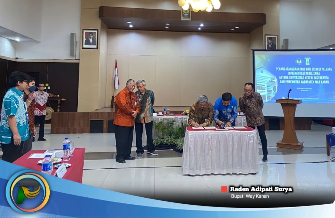 Penandatanganan MoU dilakukan usai diskusi kerkait peluang implementasi kerjasama antara UNY dengan Pemerintah Daerah Kabupaten Way Kanan.