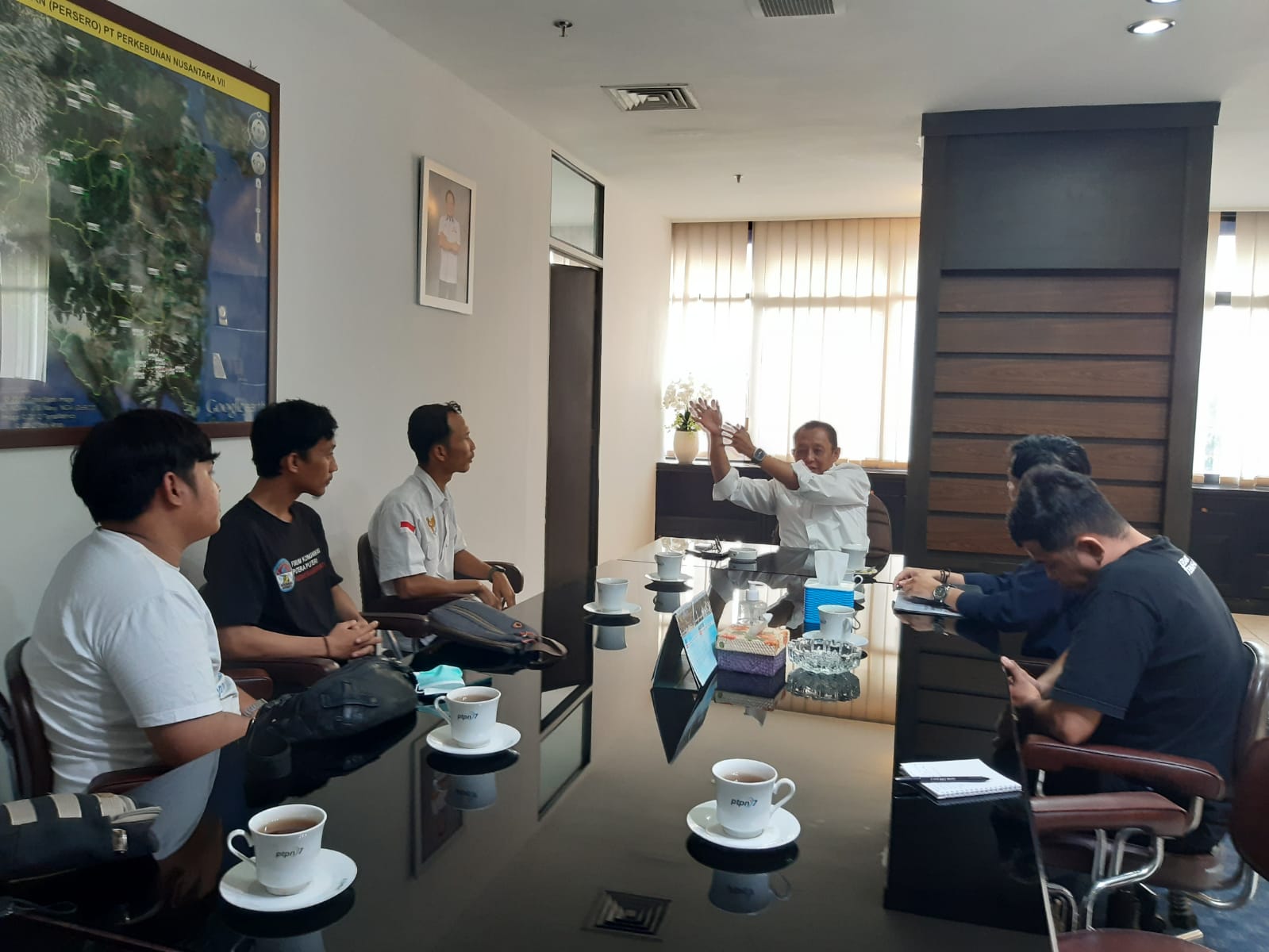 “Kami saat ini sedang merintis Rumah Baca di Kecamatan Merbau Mataram, Lampung Selatan. Lalu, kami lihat di Way Galih, PTPN VII Unit Kedaton itu juga sangat potensial. Jika berkenan, kami akan membantu PTPN VII untuk membuat Rumah Baca itu di situ, Pak,” kata Tezza yang diamini Alinda, salah satu pelopor Rumah Baca.